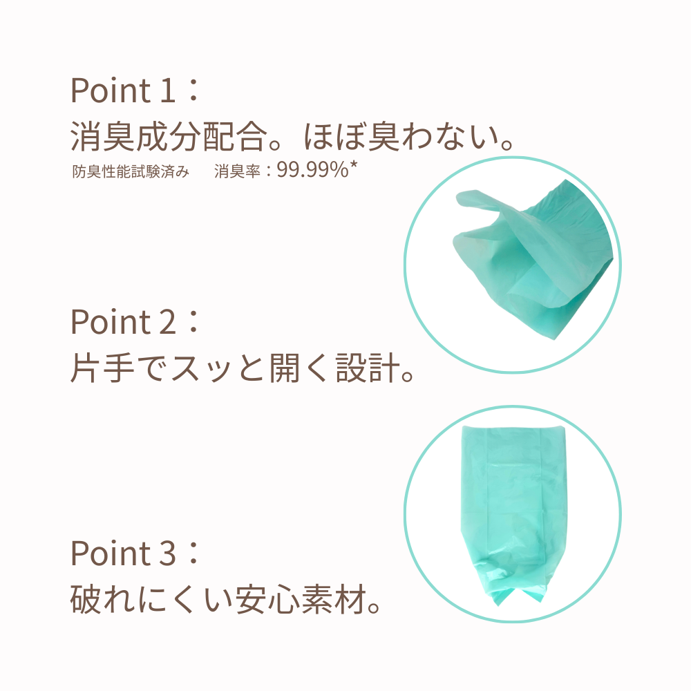イヤな臭いをしっかり防ぐ超防臭仕様(防臭率99.9%)